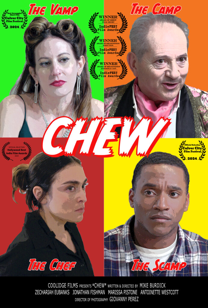 In this delicious dark comedy, two industry players (Belfont G. Meeker and Veronica Pasinissi) belong to an exclusive, secret cannibalism dinner club, sampling dishes prepared by a much sought after, yet exceedingly emotional culinary artist (Chef). When their trusted assistant goes missing, Belfont and Veronica must pressure his unknowing roommate (Michael Beans) into taking over the vacant position of coordinating all aspects of their unorthodox dining experiences.